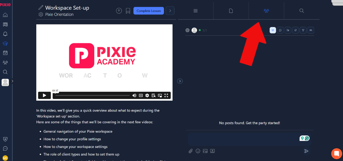 Additionally, there is also the community section of lessons. This allows users to discuss the contents of the lesson with other members of the community. It can be accessed as shown in the image below.