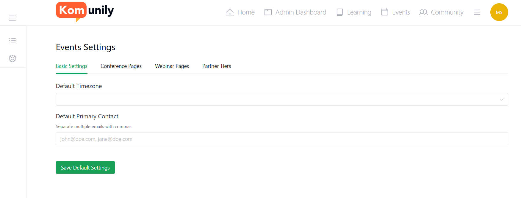The events setting page has several settings to help with events and the different types you may be hosting and is something you should check and set up appropriately before starting to create your events. This can be seen below.