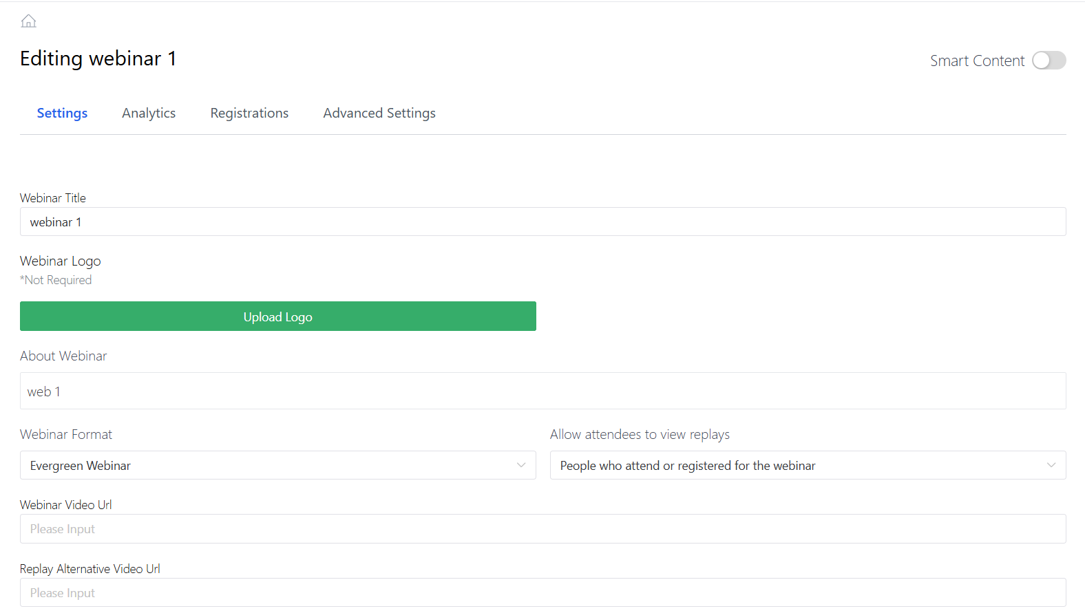 Upon doing that, you should be taken to the webinar settings as shown below, which involve a variety of settings to fill out based on how you want your webinar to be and the call-to-action settings for notifying those who signed up.