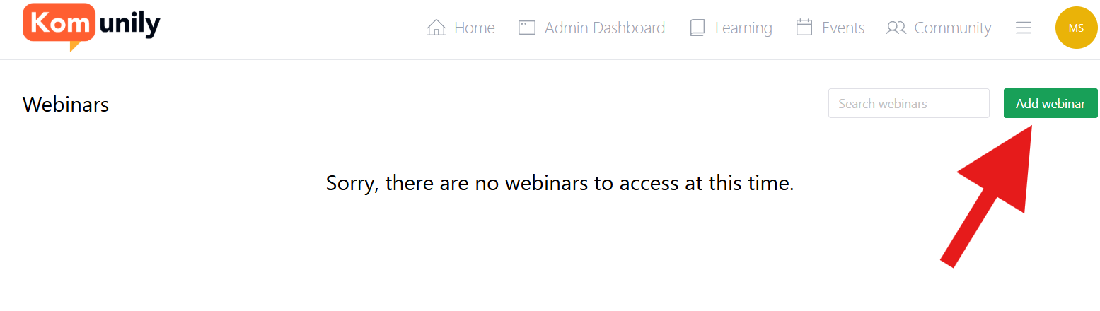 From there, you should be able to access the page shown in the image below and click the “Add webinar“ button as shown. Then, select the name of your webinar and click “Add Webinar”.