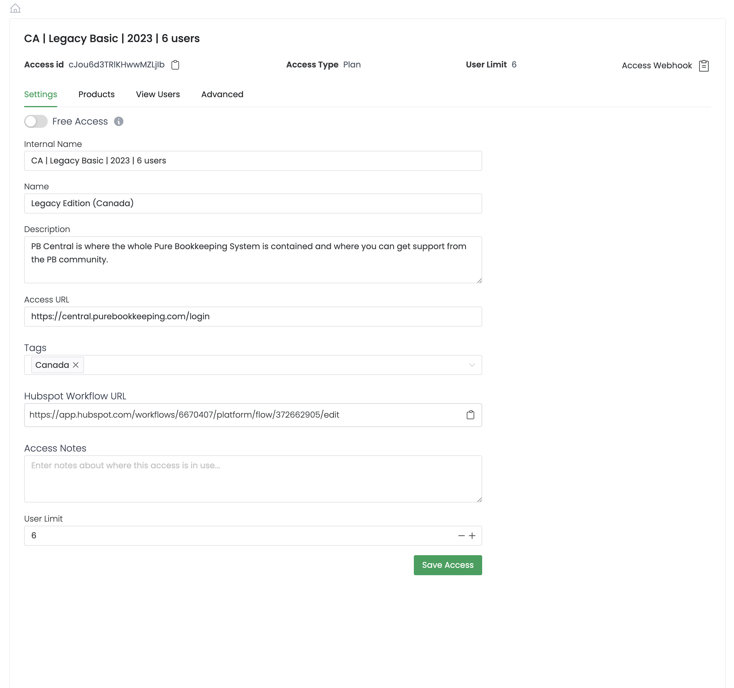 Access ID: This is static and is the identifier of the record. Names can change and have no relational impact. Everything in Komunily is related by IDs.